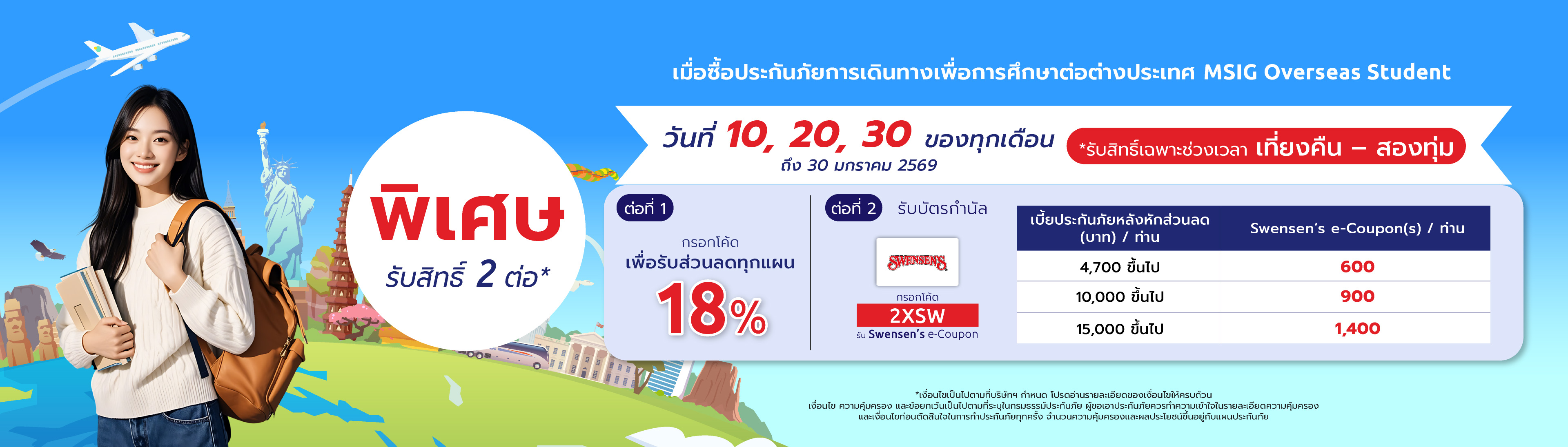ประกันภัยการเดินทางเพื่อศึกษาต่อในต่างประเทศ MSIG Overseas Student