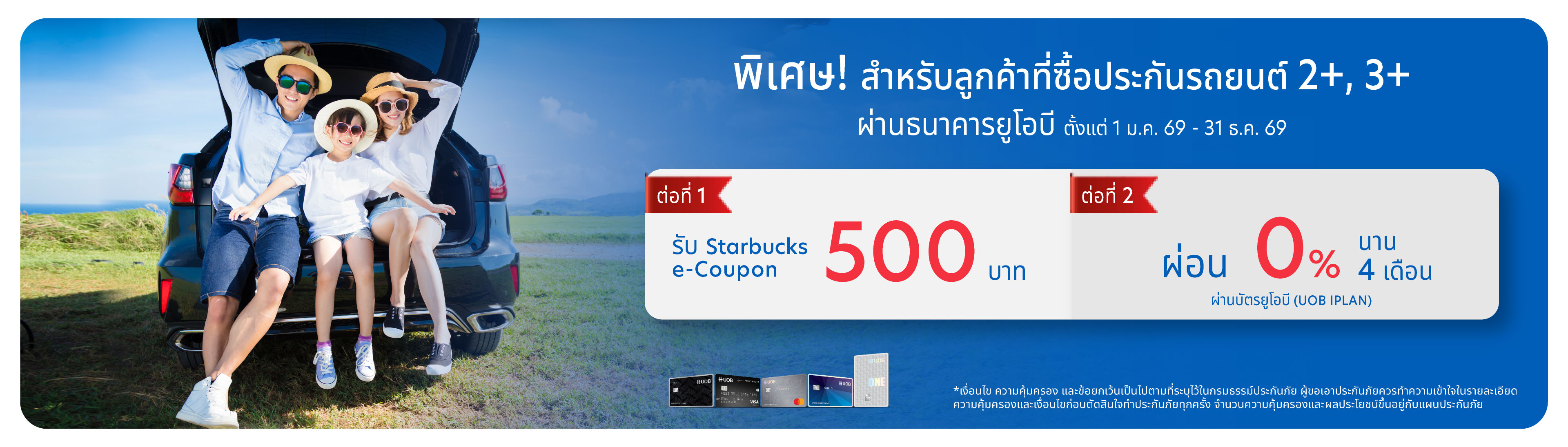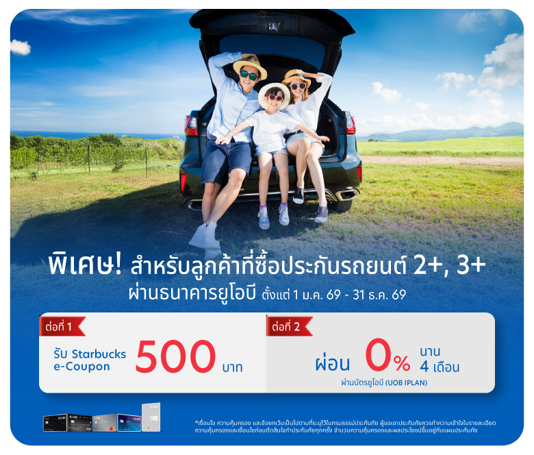 พิเศษ! สำหรับลูกค้าที่ซื้อประกันภัยรถยนต์ 2+, 3+ ผ่านสาขาธนาคารยูโอบี