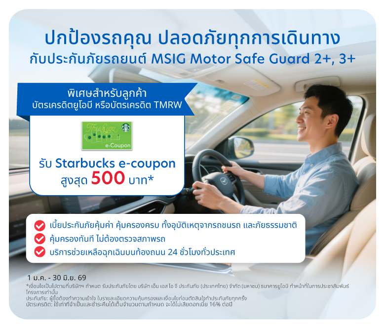 ความคุ้มครองที่คุณวางใจ เพื่อทุกการเดินทางบนท้องถนน กับประกันภัยรถยนต์ MSIG Motor Safeguard 2+, 3+